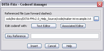 Through this dialog, you can edit the code file or modify the referenced file. Use the Key Reference button to select a key to use for referencing the code file.